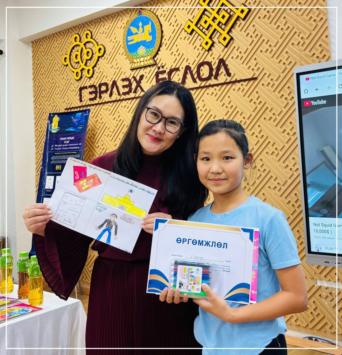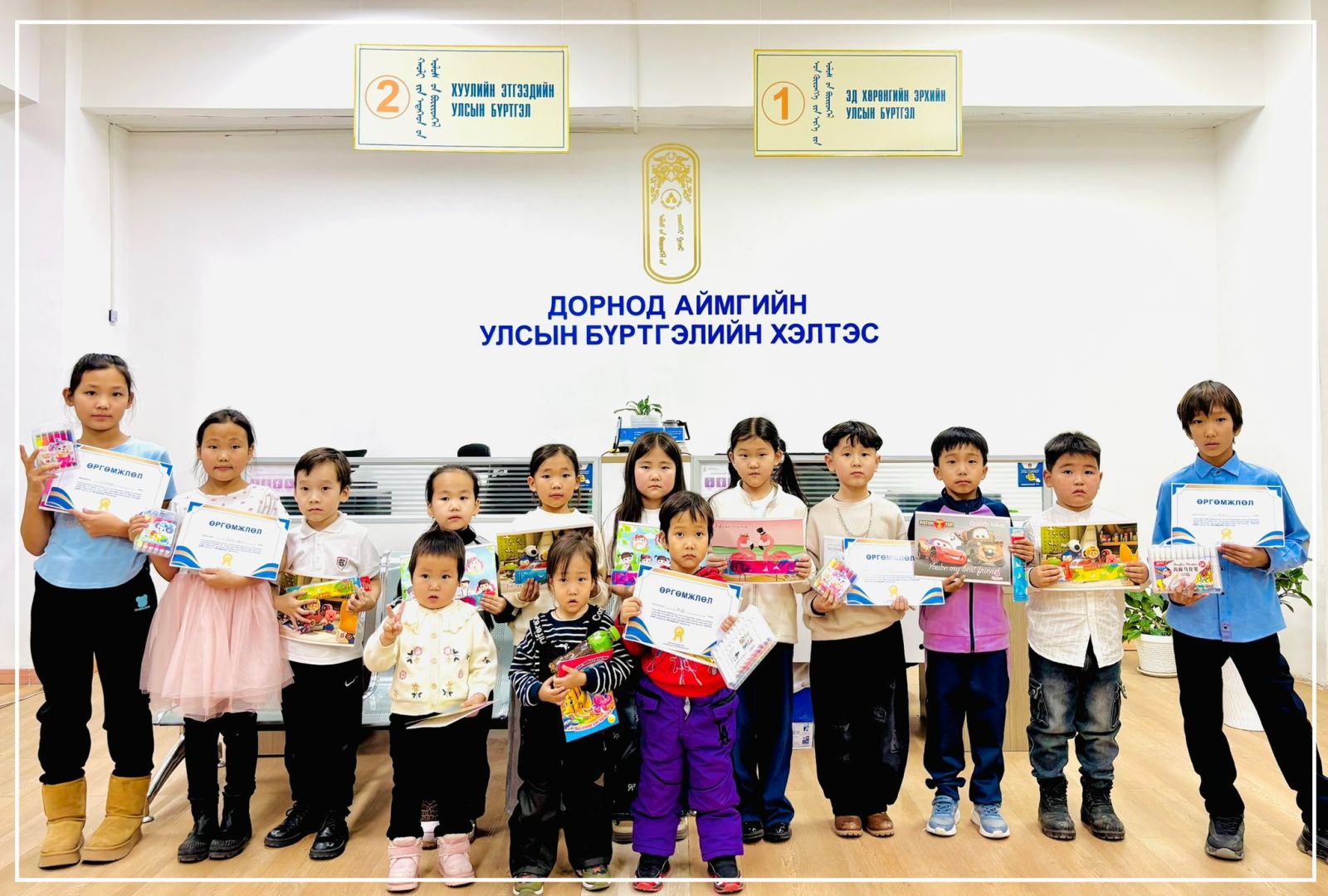 Г.Билгүүн /Улсын бүртгэгч М.Галбадрах/, Г.Агьсор /Улсын бүртгэгч А.Гэрэлцогт/, Б.Нандин-Эрдэнэ /Улсын бүртгэгч Б.Болорцэцэг/ нар шалгарч, шагналаа гардан авлаа. Хүүхдүүддээ цаашдын сурлага, урлагийн их үйлсэд нь өндрөөс өндөр амжилт хүсэн ерөөе.